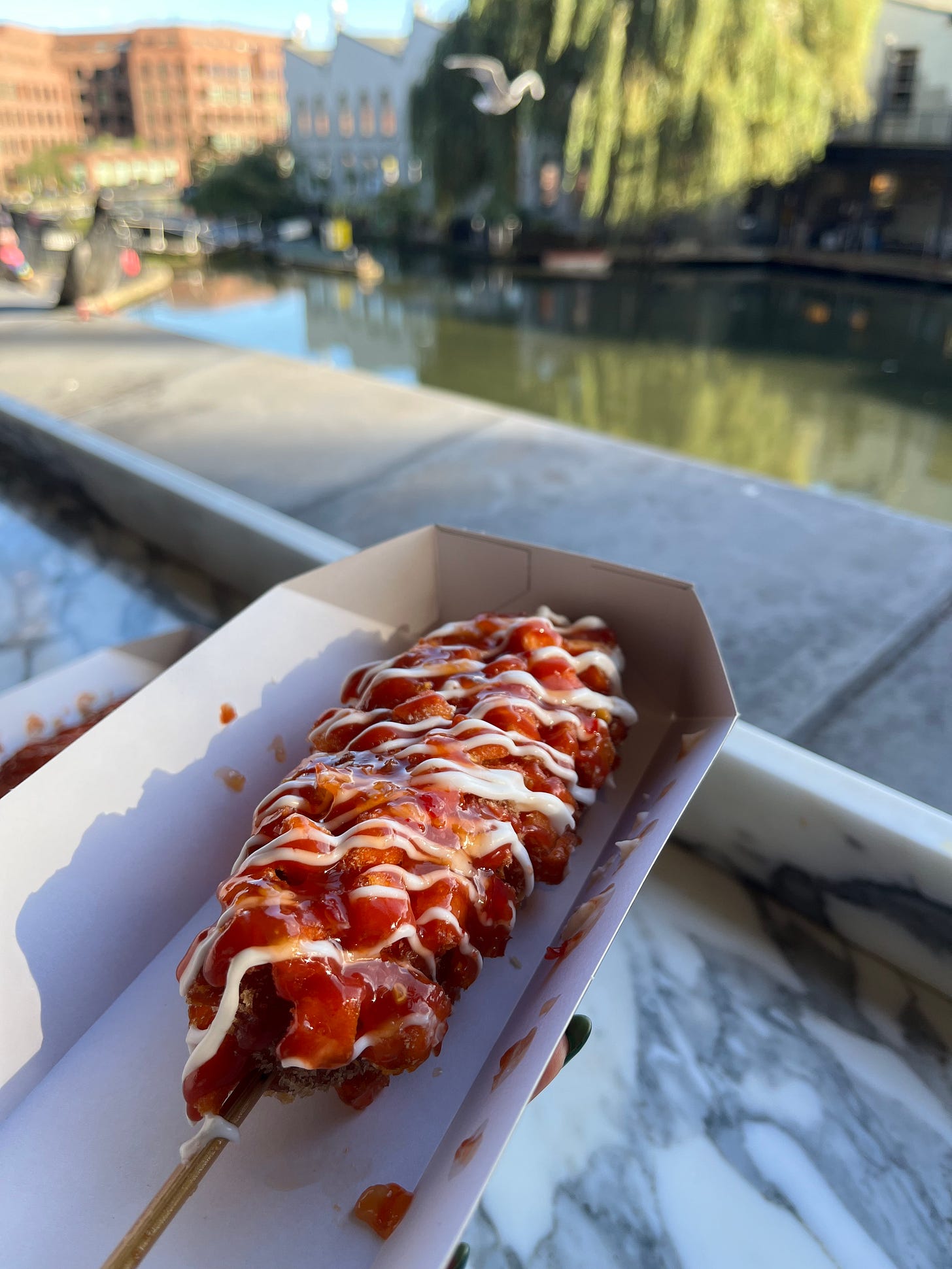 I had my first Korean corndog! It was a sweet potatoey, cheesy, meaty feast and if it wasn’t so expensive I’d have got another one and wouldn’t have had any regrets about it.