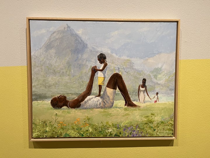 Earlier this year, the Dulwich Picture Gallery held an exhibition called Soulscapes, featuring contemporary landscape art from artists in the African Disaspora. I took myself there on a day off in April, beginning a tradition of going on monthly solo dates. I put on a cute outfit and headed on the long journey to South London, by tube, train and then foot, finishing a book along the way. Arriving at the gallery, I was greeted by open lawns and a large cherry blossom tree swaying in the wind. Children played on the grass and elders sat sipping tea on benches outside. Like an oasis, time was suspended for play, rest and presence.